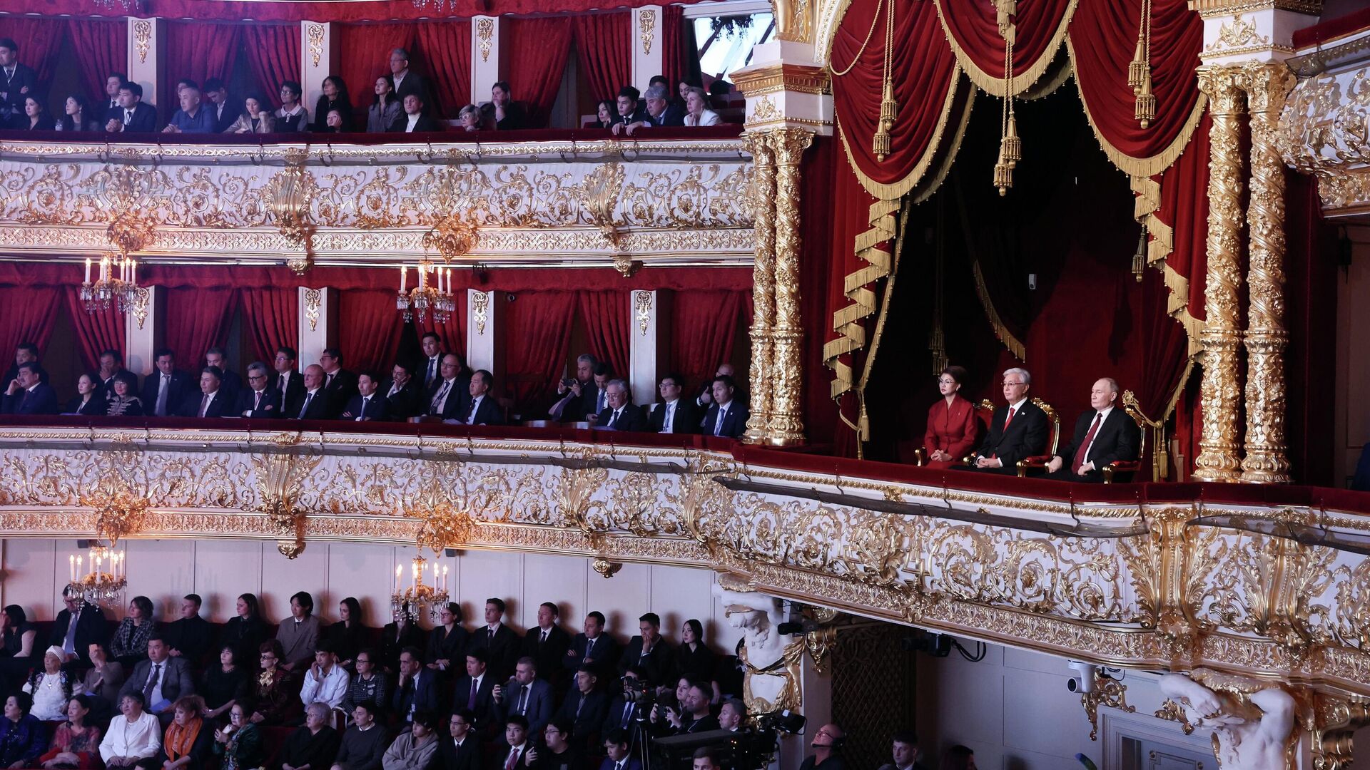 Президенты России и Казахстана, Владимир Путин и Касым-Жомарт Токаев, посетили гала-концерт в Большом театре и провели время в общении с артистами.