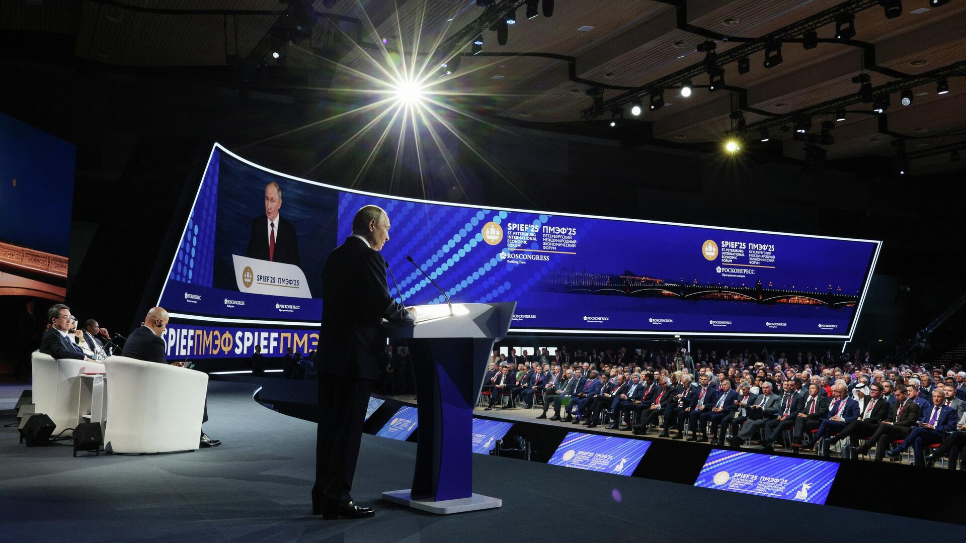 Президент Российской Федерации Владимир Путин выступил на пленарном заседании Петербургского международного экономического форума, продолжительностью 55 минут.